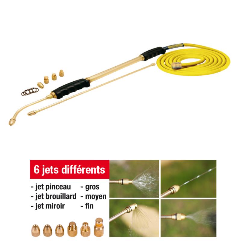 En laiton massif et équipé de joints industriels Viton, le pulvérisateur haute portée Multirex résiste aux produits corrosifs tels que javel, chlore et hydrocarbures et autres.